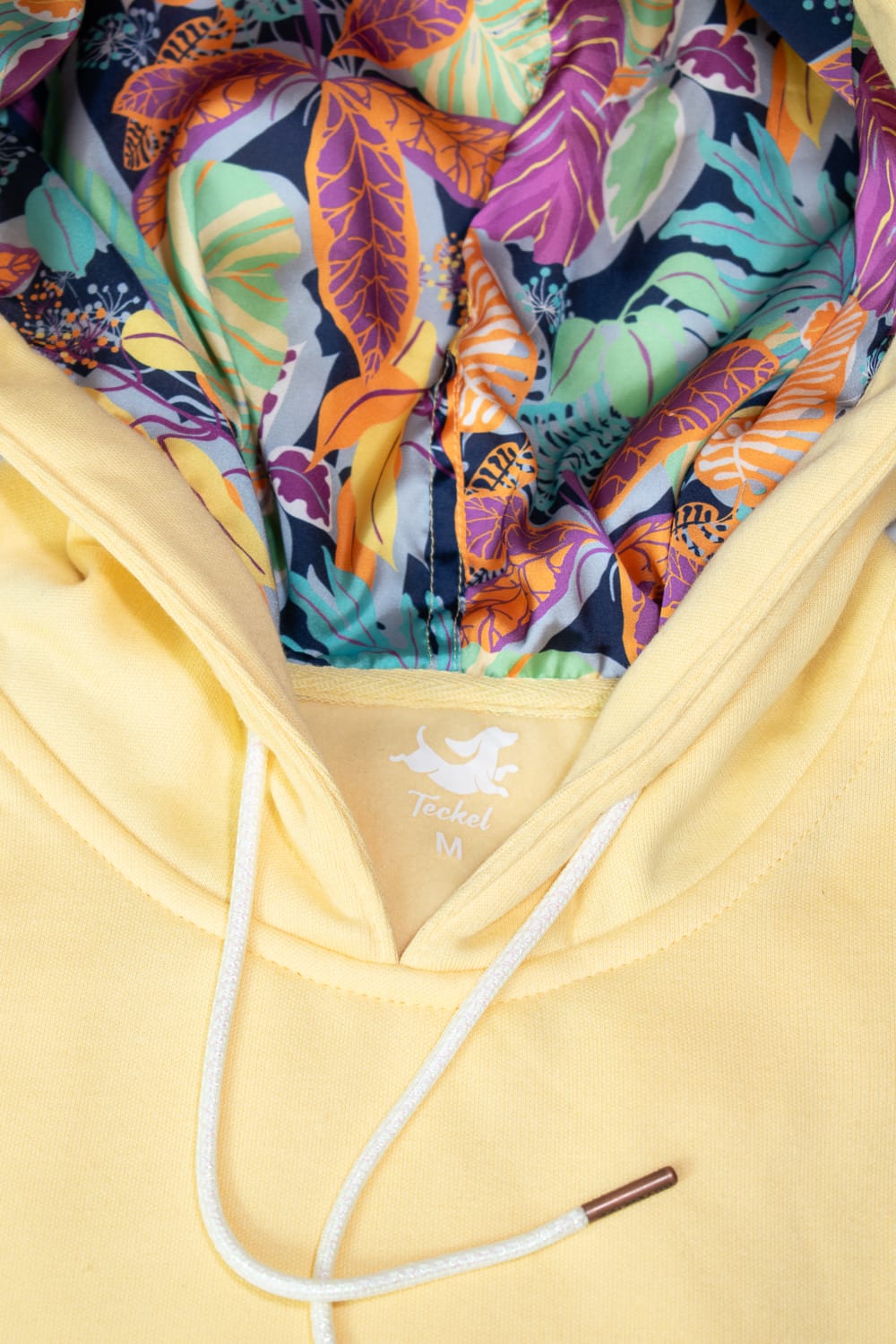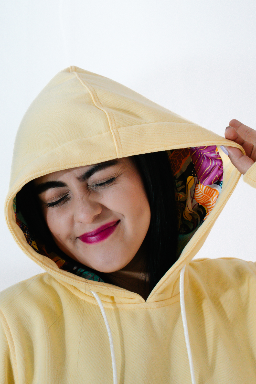 Su capota forrada con tela tejido de punto y tacto de segunda piel que añade un toque original que rompe con lo convencional y eleva cualquier outfit.