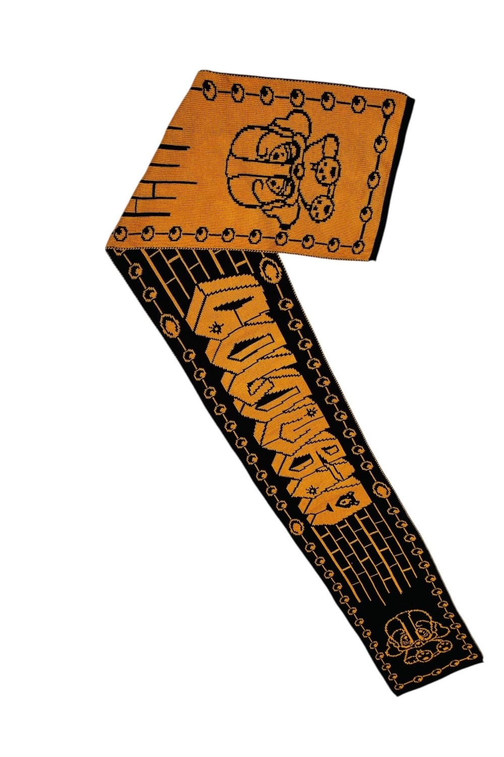 Bufanda tejida en lana acrílica, mide aproximadamente 190 x 28 cm.