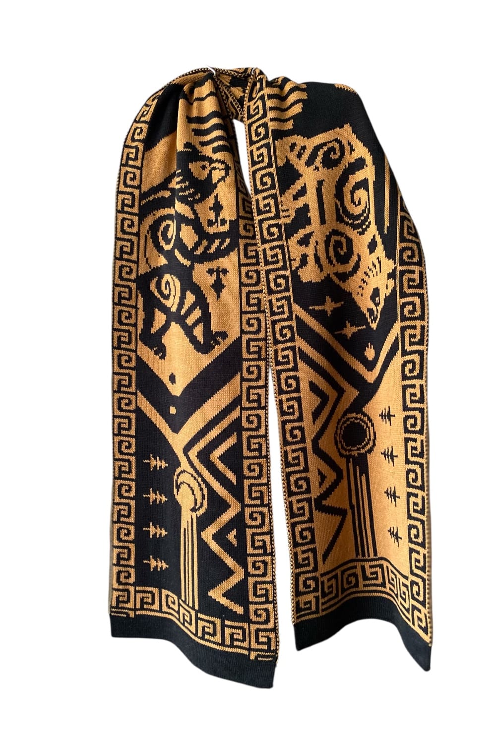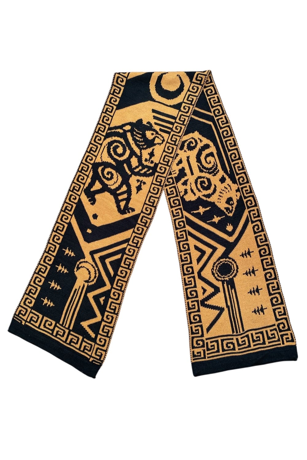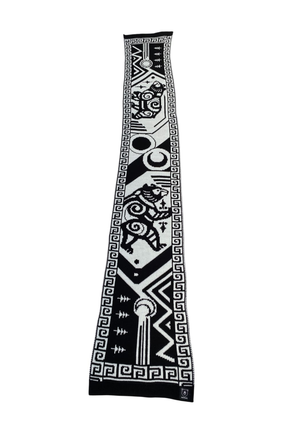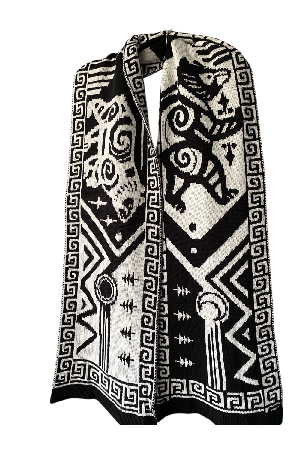 Bufanda tejida en lana acrílica, mide aproximadamente 190 x 28 cm.