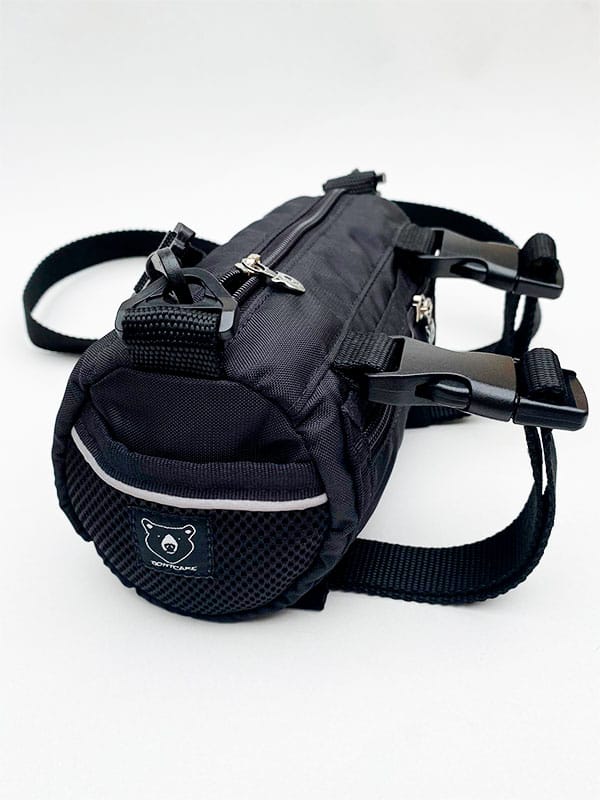 Canguro para Bicicleta forrado interior, esta hecho en material impermeable, bolsillo interior, bolsillo exterior y bolsillos laterales.Disponible en negro