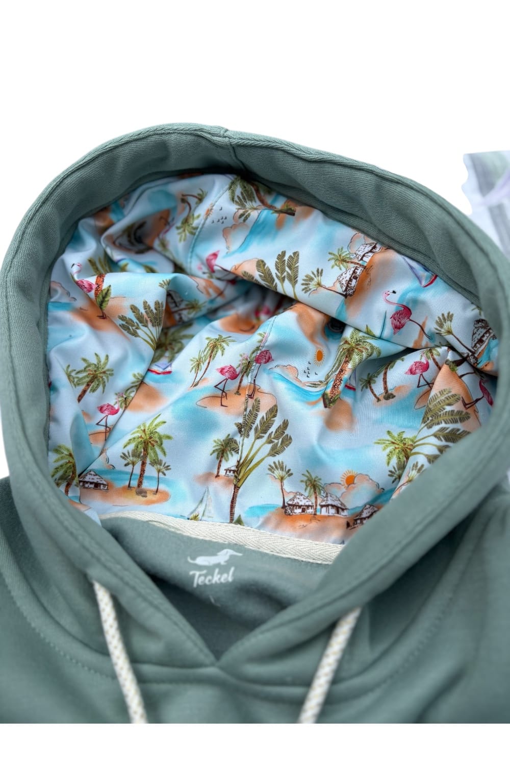 Su capota forrada con tela tejido de punto y tacto de segunda piel que añade un toque original que rompe con lo convencional y eleva cualquier outfit.