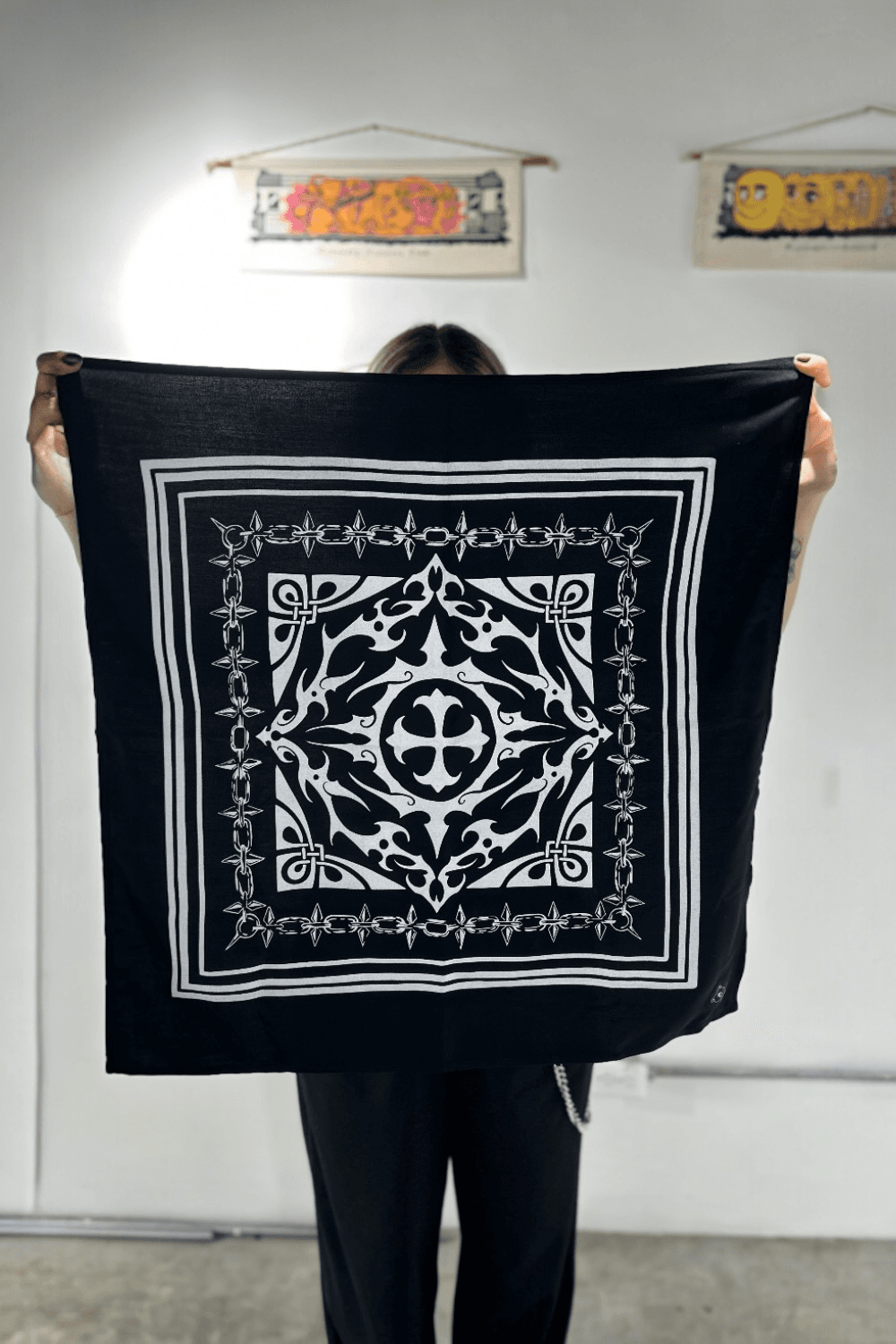 Pañoleta confeccionada en chalis de alta calidad, con un estampado realizado en serigrafía.