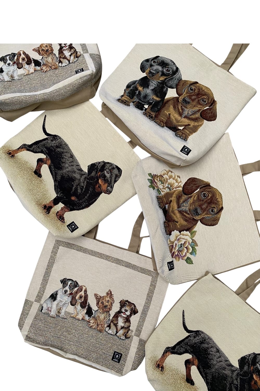 Tote bag, colaboración con Teckel, en tejido de poliéster, forrado en dril con 4 bolsillos internos uno de ellos con cremallera